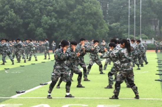 随着旋律的转变,急促的音乐响起,学子们迅速抽出匕首,展开匕首操表演——突刺、格挡、反击,每一个动作都干净利落,展现出守护家园的决绝;下半段,音乐转为舒缓的《精忠报国》,学子们放下匕首,以手语操传递情感。随着歌曲的节奏,他们的手势时而坚定,时而轻柔,将对祖国的热爱与忠诚,融入每一个细微的动作中。刚与柔的碰撞,让在场师生深刻感受到:中华儿女的爱国情怀,既有 “捐躯赴国难” 的刚毅,也有 “润物细无声” 的深情。